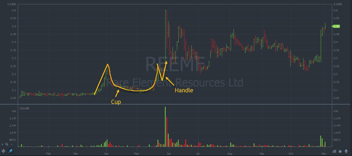 Kupa ve kulp formasyonu büyük bir fiyat kazancının erken bir işareti olabilir. Bu kalıp genellikle uzun vadeli düşüş trendlerinde ortaya çıkar. Fiyatların yukarı doğru hareket ettiğini ve geri dönmeden, baz alınmadan ve en sonunda yükselmeden önce bir başlangıçta değer kazandığını görüyoruz. Yuvarlak dip kısım "cup" olarak adlandırılır. Genellikle düşüş momentumunun değiştiğini ve yatırımcıların hisseleri düşük fiyatlardan aldıklarını gösterir.
