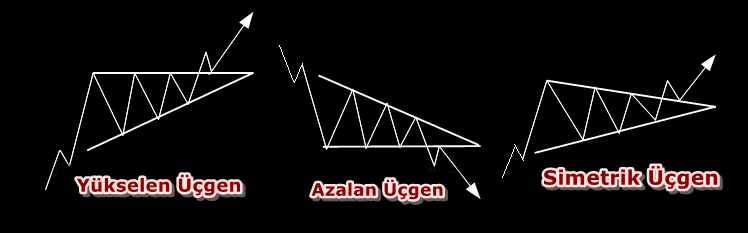 Üçgen grafik formasyonlarının 3 farklı tipi bulunur: