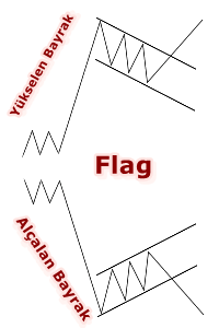 Bayrak formasyonu, yükseliş veya düşüş trendinde bulunup bulunmadığına bağlı olarak yükselme veya düşme eğilimi gösterebilir. Bir yükseliş bayrağı, fiyattaki güçlü bir yükseliş hareketi olarak nitelendirilir. Yükselmenin ardından ise piyasa durur ve fiyat geri çekilir. Bu noktadan itibaren fiyat yol boyunca bir miktar yukarı ve aşağı doğru hareket eder. Yatırımcılar genel olarak bunu geçici bir duraklama olarak görmekte ve orijinal trendin yakında devam etmesini beklemektedir.