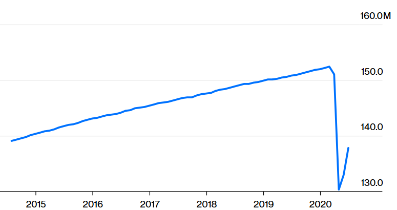 Bu durumda iyi bir haber de var: Haziran ayında daha fazla Amerikalı işine döndü ve Mayıs ayında başlayan yükseliş eğilimini sürdürmeye devam etti: