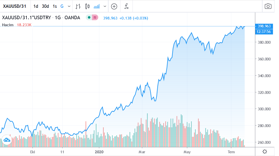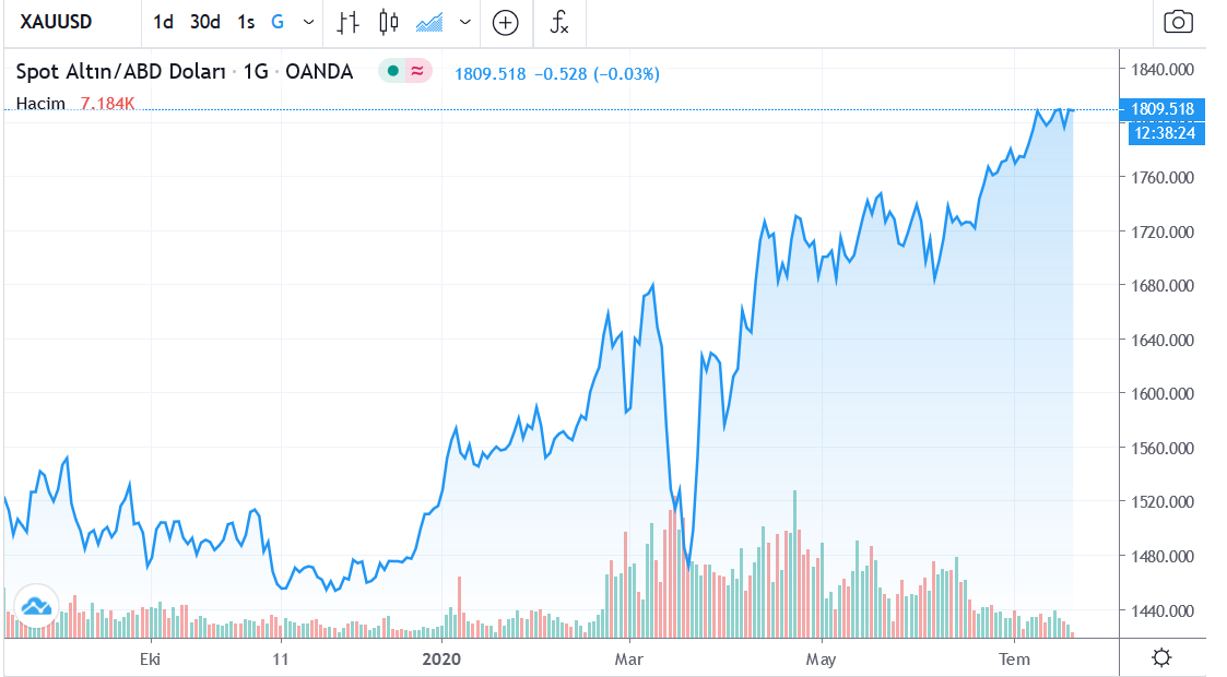 Koronavirüs salgını, özellikle Mart ayında piyasaları şoka uğrattıktan sonra, altın bulunduran yatırımcılar bile satış yaparak paralarını çekmişlerdi. Fakat o zamandan beri, yatırımcılar tekrar güvenli limana yöneldiler ve altına olan talep tekrar yükseldi. BlackRock iShares verilerine göre, ABD'de bu yıl altın fonlarına (ETF'ler) yaklaşık 12 milyar dolar yatırım yapıldı.