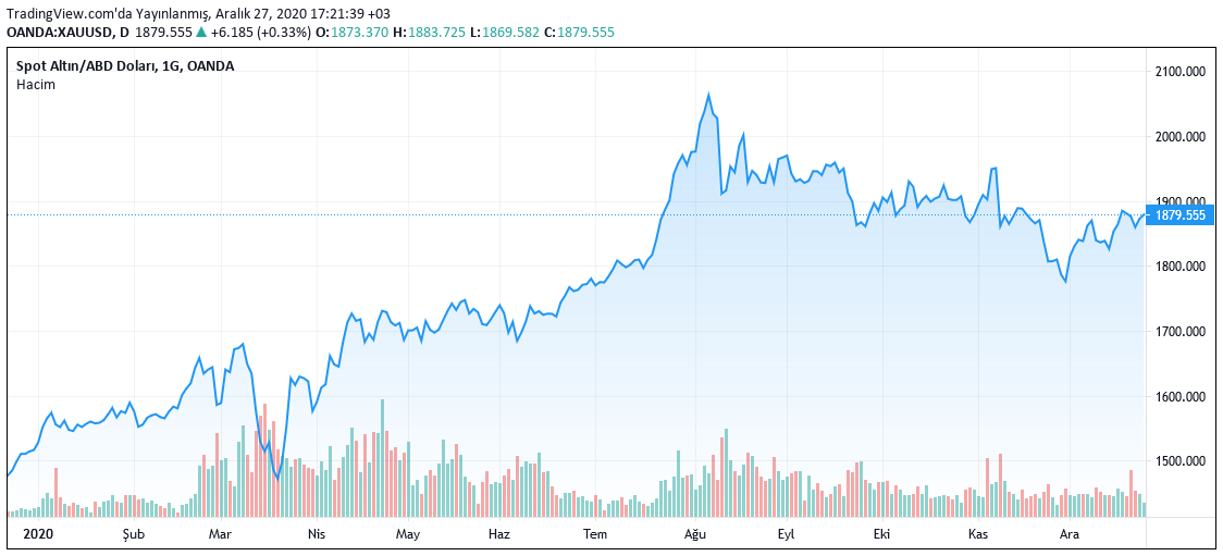 Ons altın, 2020 yılına 1400 dolar seviyesinde başladı. Gösterdiği yüksek performans ile ons altın, ağustos ayında zirveyi gördü ve 2000 doları aştı.