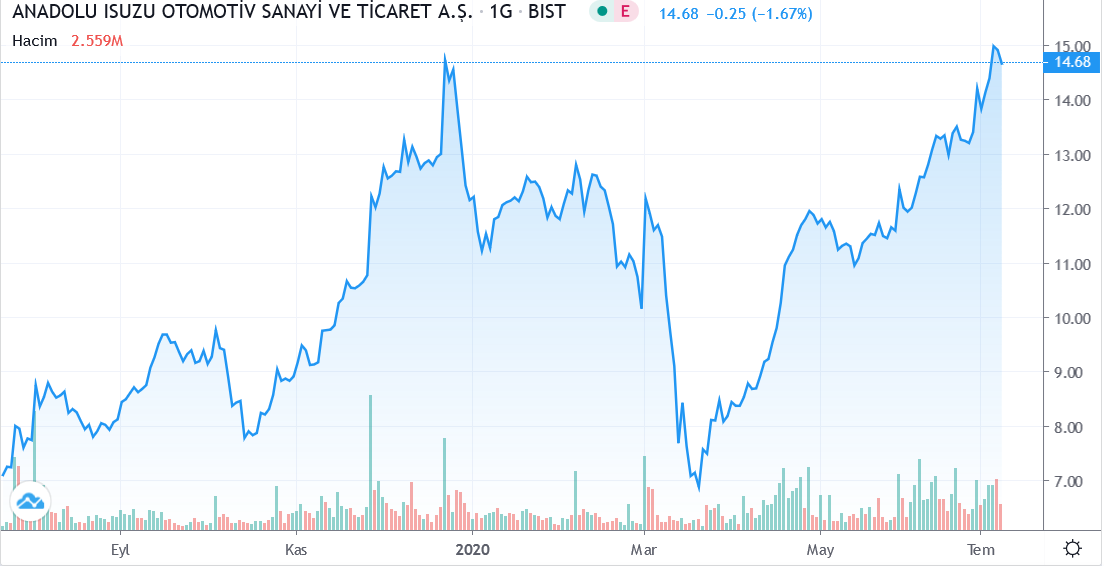 Güne 15.05 TRY fiyattan başlayan Anadolu Isuzu Otomotiv Sanayi ve Ticaret A.S. hissesi en son kapanış fiyatına (14.68) göre 0.00% değişimle 14.68 fiyattan kapattı. Gün içerisinde en düşük 14.63; en yüksek 15.20 seviyelerini test eden ASUZU.IS hissesi bir önceki kapanış fiyatına (14.68) göre değişimi 0.00 TRY oldu. Günlük işlem hacmi ise 2.56M adet olarak gerçekleşti.