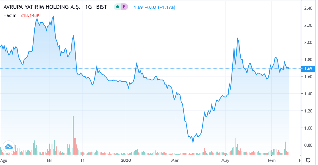 Güne 1.69 TRY fiyattan başlayan Avrupa Yatirim Holding A.S. hissesi en son kapanış fiyatına (1.69) göre 0.00% değişimle 1.69 fiyattan kapattı. Gün içerisinde en düşük 1.69; en yüksek 1.69 seviyelerini test eden AVHOL.IS hissesi bir önceki kapanış fiyatına (1.69) göre değişimi 0.00 TRY oldu. Günlük işlem hacmi ise 8.61K adet olarak gerçekleşti.