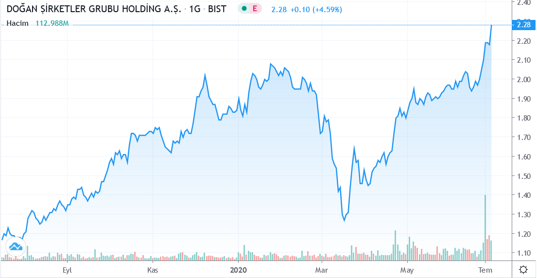 Güne 2.20 TRY fiyattan başlayan Dogan Sirketler Grubu Holding A.S. hissesi en son kapanış fiyatına (2.28) göre 0.00% değişimle 2.28 fiyattan kapattı. Gün içerisinde en düşük 2.20; en yüksek 2.27 seviyelerini test eden DOHOL.IS hissesi bir önceki kapanış fiyatına (2.28) göre değişimi 0.00 TRY oldu. Günlük işlem hacmi ise 112.99M adet olarak gerçekleşti.