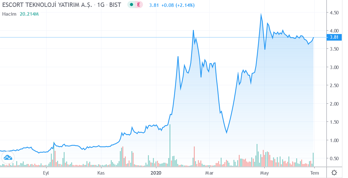 ESCOM.IS hissesi 52 haftalık en düşük 0.65 TRY fiyatını; en yüksek ise 4.86 TRY fiyatını gördü.