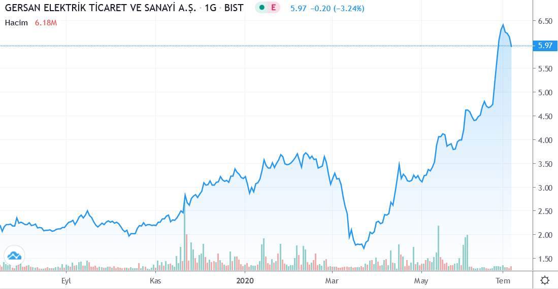 Güne 6.09 TRY fiyattan başlayan Gersan Elektrik Ticaret ve Sanayi Anonim Sirketi hissesi en son kapanış fiyatına (6.17) göre -3.24% değişimle 5.97 fiyattan kapattı. Gün içerisinde en düşük 5.79; en yüksek 6.15 seviyelerini test eden GEREL.IS hissesi bir önceki kapanış fiyatına (6.17) göre değişimi -0.20 TRY oldu. Günlük işlem hacmi ise 6.18M adet olarak gerçekleşti.