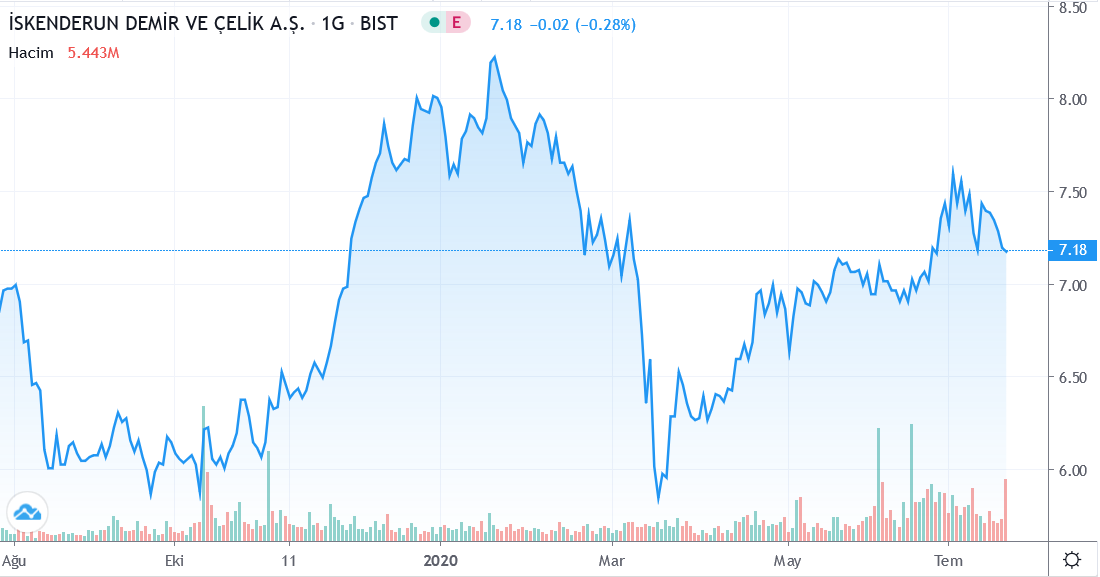ISDMR.IS hissesi 52 haftalık en düşük 5.46 TRY fiyatını; en yüksek ise 8.30 TRY fiyatını gördü.
