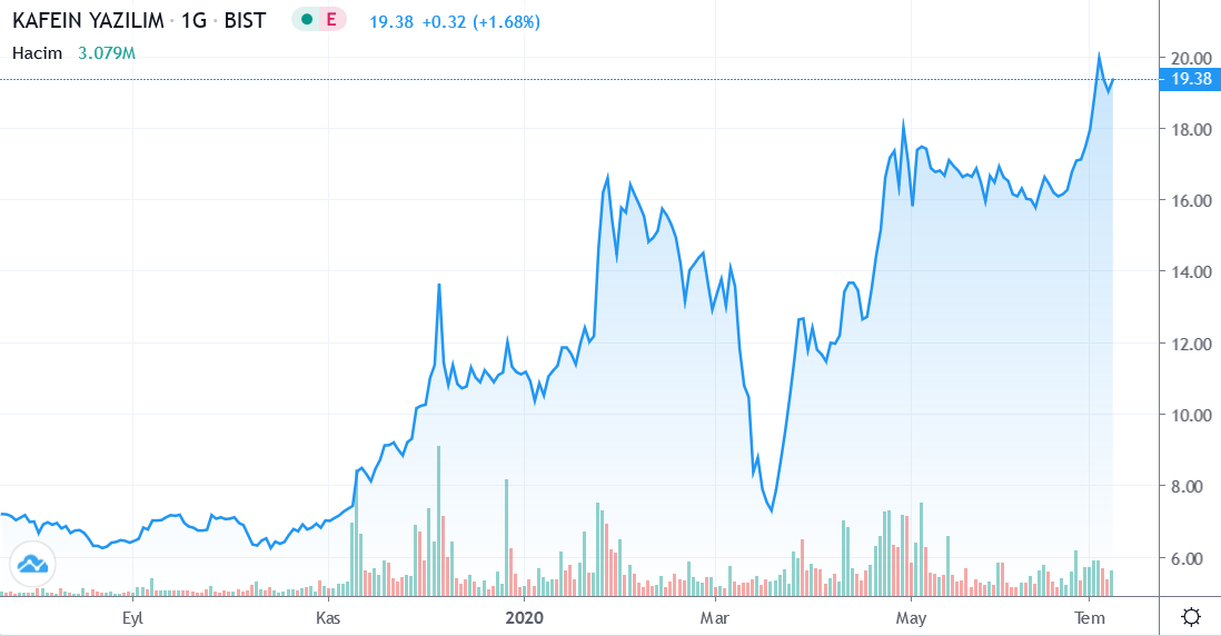 Güne 19.15 TRY fiyattan başlayan Kafein Yazilim Hizmetleri Ticaret A.S. hissesi en son kapanış fiyatına (19.38) göre 0.00% değişimle 19.38 fiyattan kapattı. Gün içerisinde en düşük 18.85; en yüksek 19.91 seviyelerini test eden KFEIN.IS hissesi bir önceki kapanış fiyatına (19.38) göre değişimi 0.00 TRY oldu. Günlük işlem hacmi ise 3.08M adet olarak gerçekleşti.