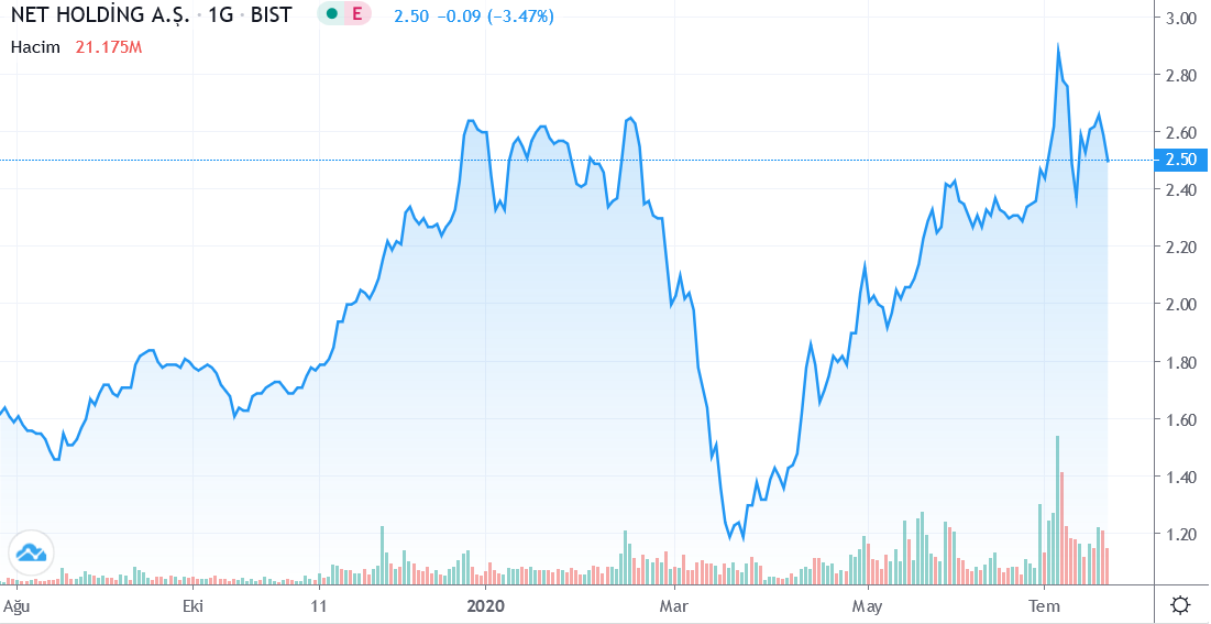 NTHOL.IS hissesi 52 haftalık en düşük 1.11 TRY fiyatını; en yüksek ise 2.98 TRY fiyatını gördü.