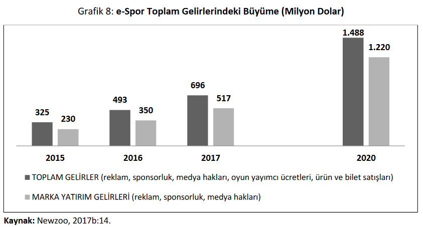 E-spor sektörününün 2020 yılında 1,4 milyar doları aşacağı tahmin edilmektedir.