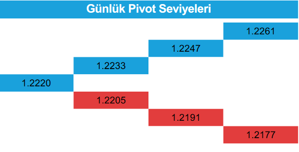 Paritede bugün dünün en düşüğü 1,2195’in altında 1,2175ve 1,2108 destek seviyeleri olarak izlenebilir.