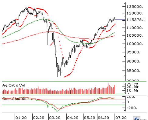 Ancak özellikle banka hisselerindeki açığa satış yasağının kalkmış olması ve yurtdışı piyasalardaki satıcılı seyirle endeks günü %1,04 azalışla 115.314 seviyesinden tamamladı.