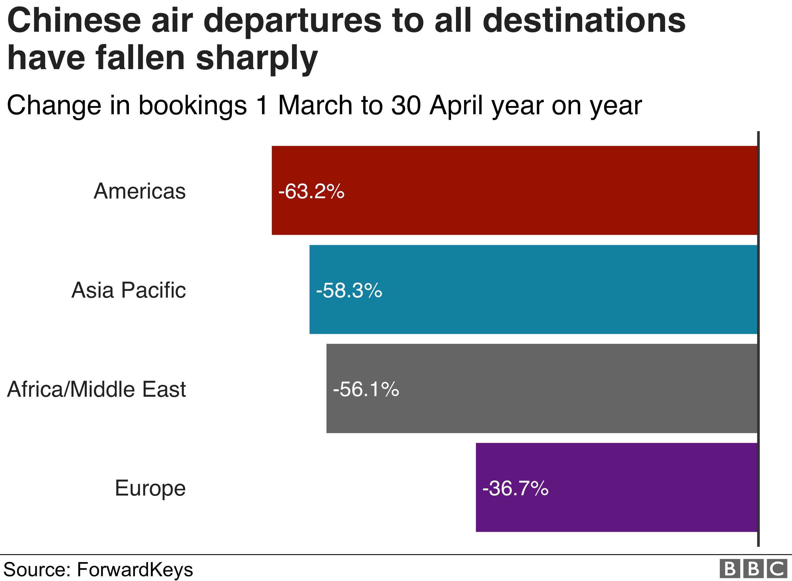 VisitBritain'e göre, Çin'den İngiltere'ye 2019 Eylül ayına kadar (12 aylık rapor) 415.000 ziyaret yapıldı. Çinli turistler ayrıca diğer turistlere oranla çok daha fazla harcama yapıyor. Daha büyük ölçekli etkinlikler ve uçuşlar iptal edildikçe, havayolu endüstrinin de çok daha büyük bir darbe alabileceği korkusu var.