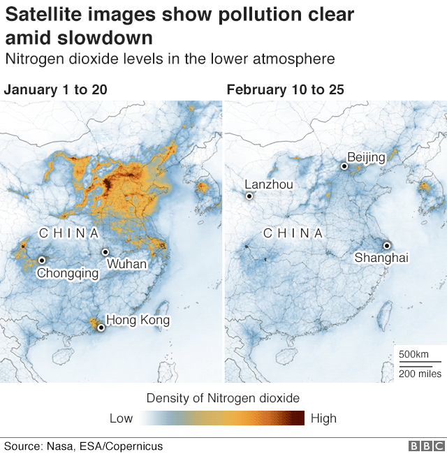 Nasa, kirliliği gösteren uyduların ülke genelinde azot dioksitte önemli bir düşüş tespit ettiğini söyledi.