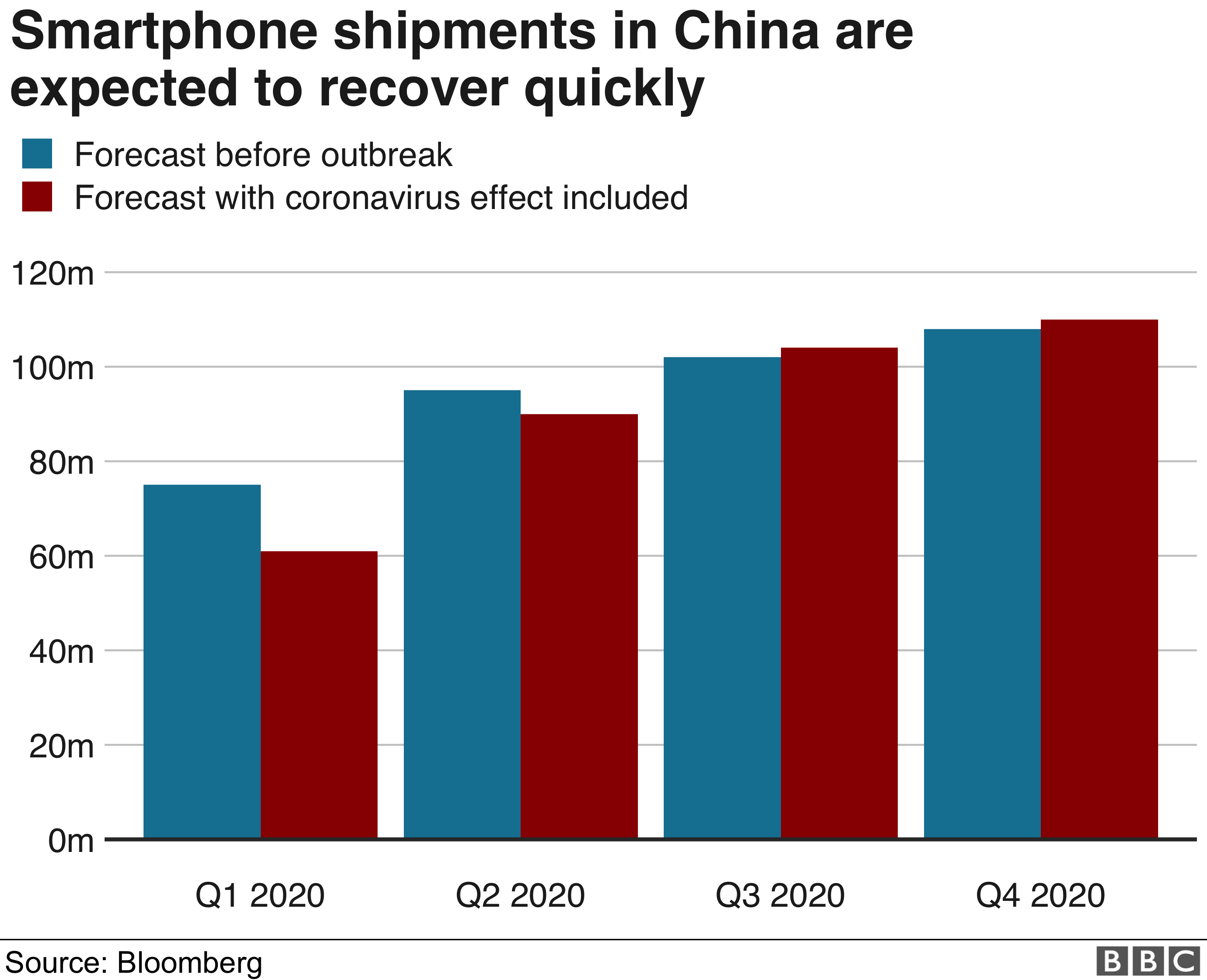 Akıllı telefon ticaretinin de 2020'nin ilk yarısında büyük bir darbe alması bekleniyor, fakat sonrasında toparlayacağı öngörülüyor.