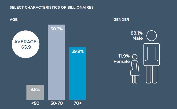 Milyarderlerin yaklaşık 9/10'u servetlerini kendi çabalarıyla oluşturmuşlardır. Bazılarının serveti miras yoluyla, bazılarının hem miras hem de bireysel çabalarıyla oluşmuş olsa da genel olarak bu kategorideki insanlar kendi işini kendi yapmak isteyen kişilerden oluşuyor. Pandemiye ayak uydurmaya çalışan milyarderlerin yaş ortalaması 66 olduğu için de aktif olarak işlerini yapmada zorlananların sayısı oldukça fazla. Bu nedenle, çeşitli danışmanlar, hayırseverlik ve yatırım çeşitlendirme gibi yöntemlerle bu krizin içinden çıkmaya çalışıyorlar.
