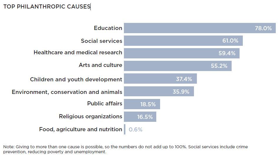 Çok ilginç gelecek ama milyarderlerin ilgi alanlarının en tepesinde "hayırseverlik" bulunuyor. Aşağıdaki tablo, 3 farklı raporun sonucunu karşılaştırmalı olarak gösteriyor. 2 raporda da ilk sırayı "hayırseverlik" çekiyor.