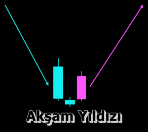 Akşam yıldızı, sabah yıldızı formasyonunun tam zıttıdır ama bunda da 3 mum bulunur: