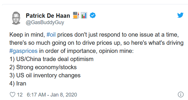 ABD'nin, İran'ın önde gelen komutanı Qasem Soleimani'yi öldürerek Ortadoğu'daki gerilimi yükseltmesinin ardından petrol fiyatları yükseldi. Ancak benzin fiyatları Amerika Birleşik Devletleri'ndeki sürücüler için neredeyse hiç değişmedi. Pazartesi günü ortalama benzin fiyatı 2.58 dolardı. Fakat bu uzun sürmeyebilir: benzin fiyatları, Perşembe günü düzenlenen saldırıdan bu yana galon başına yaklaşık 5 - 7 sentlik bir artış gösterdi.