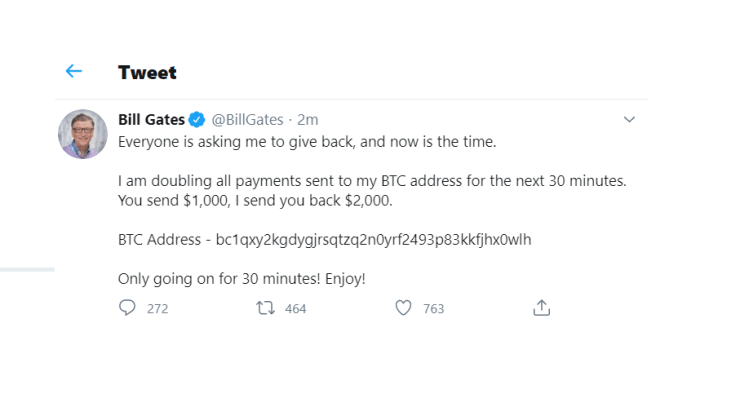 Çarşamba günü erken saatlerde, birkaç kripto para birimi hesabı aynı anda CryptoForHealth adlı bir kimlik avı sitesine bağlandı. Geçmişte de Twitter'da kripto para dolandırıcılığı yapılmıştı. Çarşamba günü saldırıya uğramış tüm hesaplar doğrulandı. Çarşamba günkü tweetlerin bir uygulama veya üçüncü taraf bir yazılım değil, Twitter.com'a erişen bir web tarayıcısı üzerinden gönderildiği görüldü. Twitter ise kontrolü yeniden kazanmak için tüm doğrulanmış hesapların tweet göndermesini bir süre engelledi.