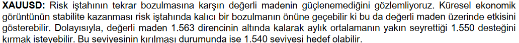 ZİRAAT YATIRIM - XAUUSD TEKNİK ANALİZİ - 23.01.2020