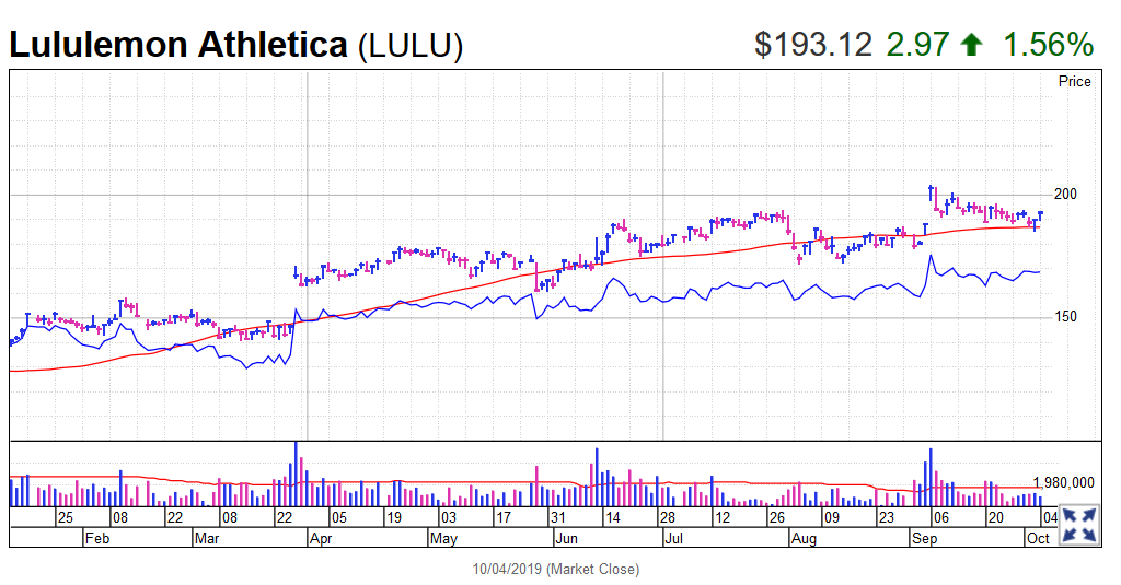 Apple, Microsoft ve Comcast hisse senetleri gibi, Lululemon hisse senetleri de eylül ayında seviyesini yükseltti ve % 1.8 artarak 193.12 seviyesine geldi.