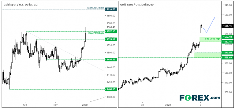 Şimdilik Cuma günü gerçekleşen kapanış 1552 civarında bir destek bölgesi öneriyor. Saatte böyle büyük bir artış gördüğümüz göz önüne alındığında, trader'lar altını daha fazla destekleyen yeni gelişmeler görmedikçe fiyatların daha da konsolide olduğunu görmek isteyebilirler.