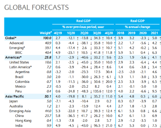 ABD GSYH'sinde beklenen düşüş Avrupa'da sadece İtalya'nın % -8.5 oranındaki düşüşüyle aşıldı. En kötüsü İtalya, ardından Barclays'ın tahminleri gerçekleşirse Peru, Malezya ve nihayet ABD.