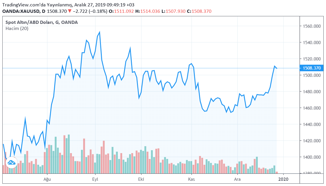 Bu yıl, Perşembe günkü artış da dahil olmak üzere altın % 17'den fazla arttı ve 2010'dan bu yana ABD-Çin ticaret savaşı belirsizliği ve dünya merkez bankalarının faiz oranlarındaki düşüşlerine rağmen en iyi yıllık performansını sürdürmeye devam ediyor. Yatırımcılar, yıl boyunca resesyon korkusu sebebiyle yatırımlarını potansiyel bir gerilemeye karşı korumak için güvenli limana yatırım yaptılar.