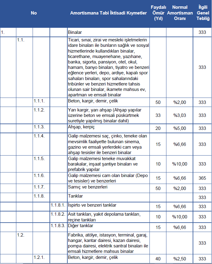 2020 yılı amortisman oranları, TÜRMOB'da tablo şeklinde verilmiştir. [1]