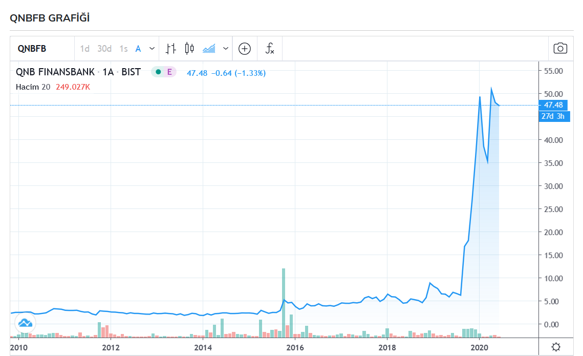 QNB Finansbank A.Ş. (QNBFB): Finansbank A.Ş, 26 Ekim 1987 tarihinde 4 milyon dolar ödenmiş sermaye ile kuruldu. Türkiye'de halka açılan ilk özel sektör bankası olma özelliğine sahiptir. Hisseleri 3 Şubat 1990 tarihinde İMKB (yeni adıyla Borsa İstanbul (BİST))'de işlem görmeye başlamıştır.