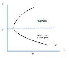 Snob etkisi aşağıdaki grafikte gösterilmektedir. Burada X ekseni üzerinde bir snob malının talep miktarı ve y ekseninde fiyatını görüyoruz.