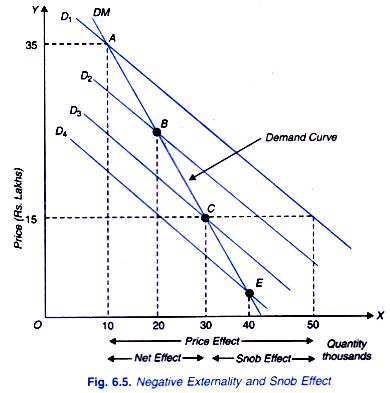 Yine, eğer insanlar 30 bin kişinin bu metaya sahip olduğuna inanırsa, snob değeri veya prestij değeri daha da azalacaktır. Sonuç olarak, metaya olan arzu veya talep azaldıkça talep eğrisi sola kaymaya devam edecek ve D3, D4... diye devam edecektir.