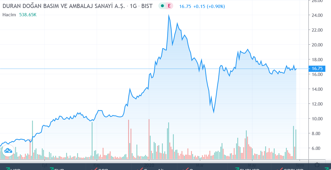 DURDO.IS hissesi 52 haftalık en düşük 5.38 TRY fiyatını; en yüksek ise 24.98 TRY fiyatını gördü.