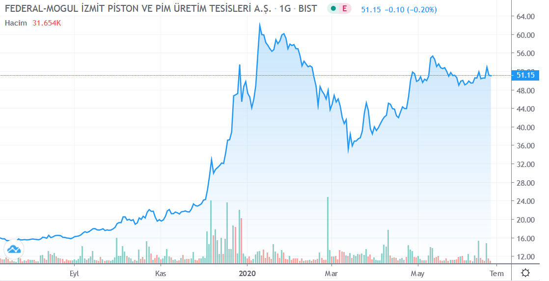 FMIZP.IS hissesi 52 haftalık en düşük 15.10 TRY fiyatını; en yüksek ise 63.10 TRY fiyatını gördü.