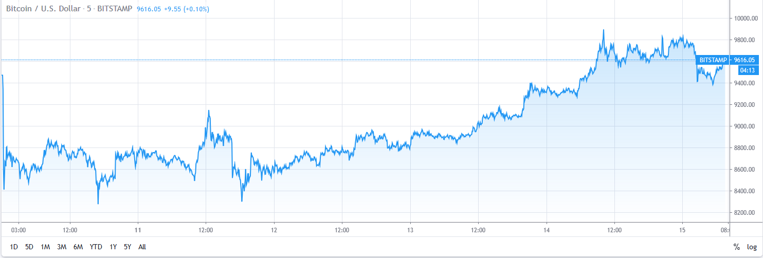 Halving gerçekleştiğinde Bitcoin'in fiyatı %12 oranında yükseldi. Son 24 saat içinde Bitcoin %6 artarak 9,689 dolar seviyesinde işlem gördü. Dünyanın ilk kripto para birimi, 13 Mayıs'tan bu yana 10 günlük ve 50 günlük hareketli ortalamaları yükseliş seviyelerinin üzerinde içeren teknik göstergelerle daha da yükseliyor.