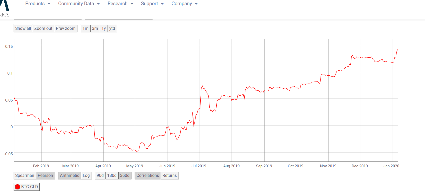 Kripto para birimleri ve döviz konusunda uzmanlaşmış olan Quantum Economics'in kurucusu Mati Greenspan, çoğu yatırımcı tarafından enflasyona karşı geleneksel bir riskten korunma olarak kabul edilen bir BTC- Altın grafiği gönderdi. Ancak Greenspan, görünüm negatiften pozitife dönmüş olsa da, korelasyonun “zayıf” göründüğünü belirtti. Greenspan'a göre, bu hiç de güçlü bir korelasyon değil. CoinMetrics tarafından derlenen verilere dayanarak, altın ve bitcoin arasındaki bir yıllık bir süre boyunca korelasyon katsayısı, Mayıs 2018'de -0.04'ten sadece 0.15'e yükseldi.