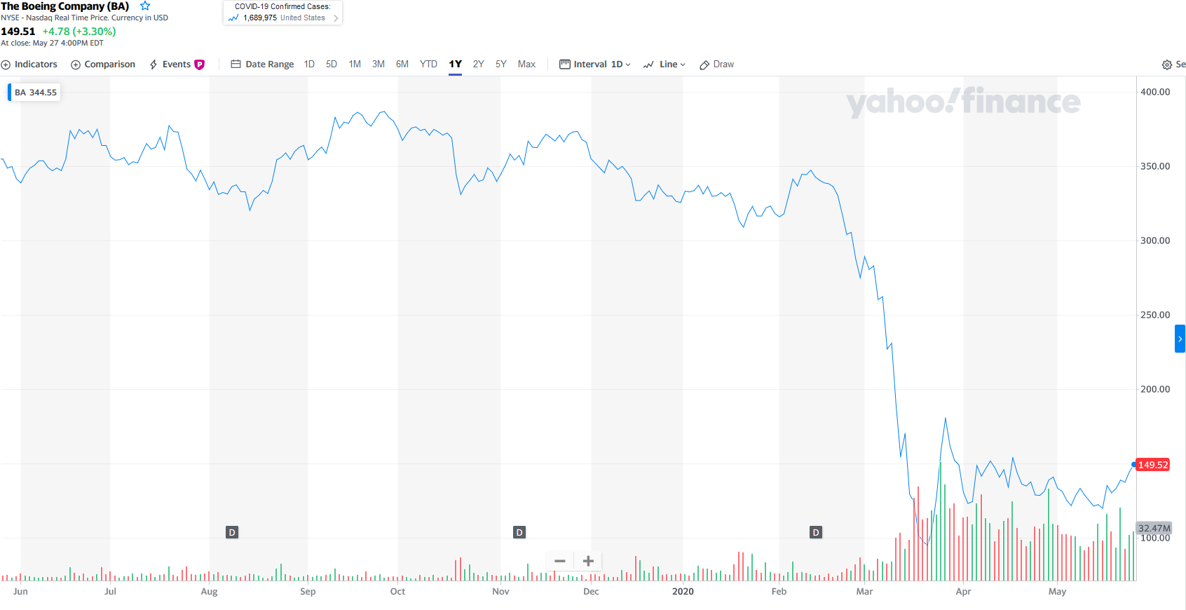 Boeing hisseleri 2020 Şubat ayından sonra büyük düşüş yaşamıştı.