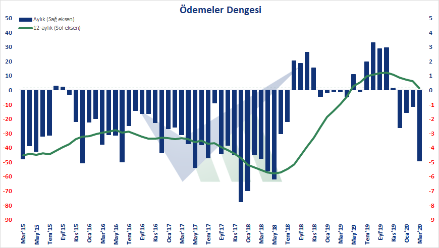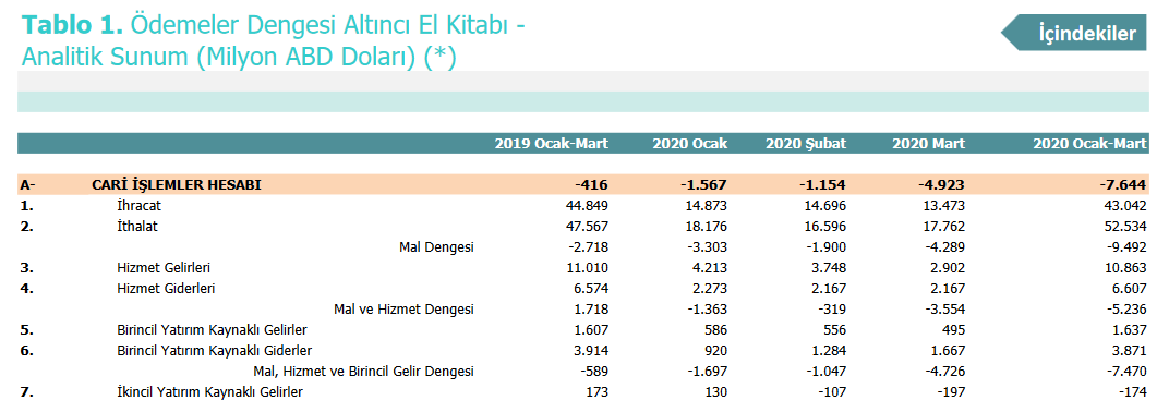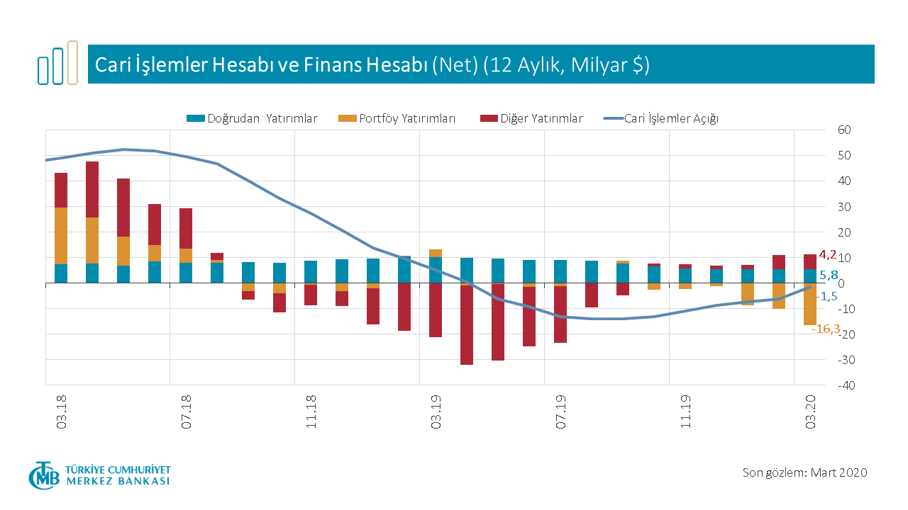 TCMB verilerine göre Türkiye'nin Mart 2020 ödemeler dengesi: