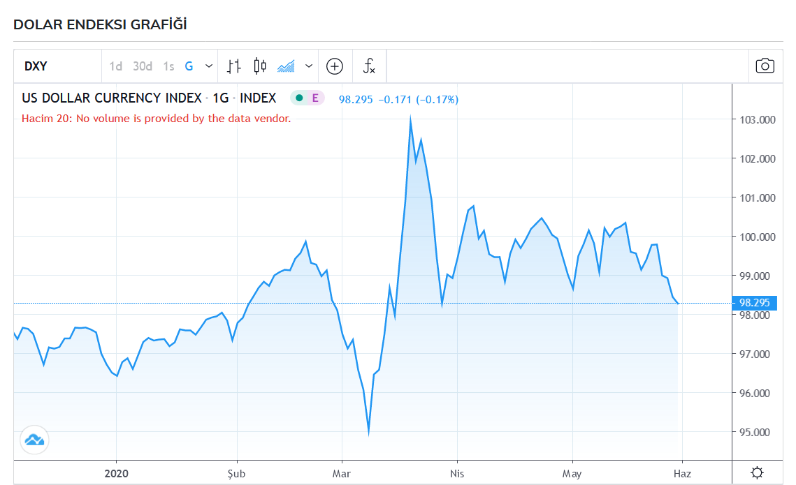 Dolar endeksi, diğer para birimlerine karşı Mayıs ayında en kötü performansını gösterdi. Büyük baskı altına giren endeks, 98.166 seviyesine kadar geriledi.