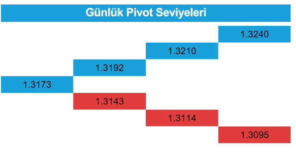 Olası geri çekilmelerde 1,3120’nin altında 1,3100 ve 1,3086 seviyeleri destek noktaları olarak izlenecektir.