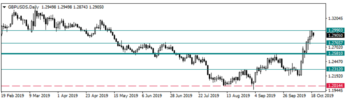 Bugün hem İngiltere  hem  de  ABD  tarafında önemli  bir  veri  akışı bulunmazken İngiltere’de Brexit gündemi izlenmeye devam edilecek. Sabah saatlerinde aşağı yönlü eğilim gördüğümüz paritede bugün 1,2875  seviyesini  üzerinde kalınması durumunda önce 1,2950  ardından dünün zirvesi 1,2988  direnç  noktaları  olarak izlenebilir.