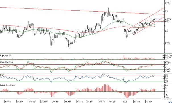 - Beklentimiz yukarı yönde 23,00’ün kırılmasıyla birlikte 24,0 fiyat seviyesinin görülmesi yönündedir.