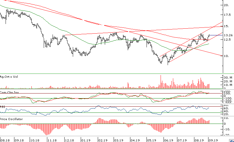• Hissede  önceki zirve seviyesi olan 13,70 direncine doğru bu seviyeyi kırma  denemeleri beklemekle birlikte 15,00 seviyesinin ilk aşamada hedef  olmasını bekliyoruz