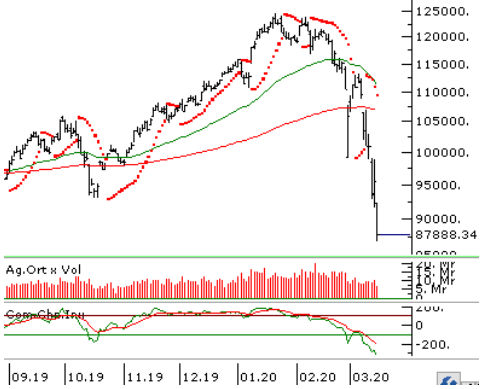BİST100 endeksi koronavirüs korkusuyla günü %8,07 oranında düşüşle 87.888 seviyesinden kapattı.