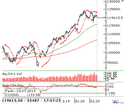 Endeksin pozitife dönmesi durumunda takip edeceğimiz direnç seviyeleri 120.500 – 121.200 – 121.850 olacak. Kar satışlarının devamı durumunda destek seviyeleri ise 119.100 – 118.500 – 117.900 olacak.