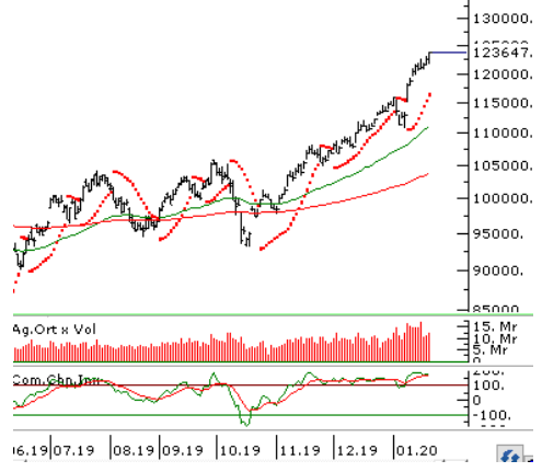 Piyasa açılışı ardından gelen kar satışları, öğleden sonra Almanya’da beklentilerden iyi gelen ZEW Endeksleri ile ABD Başkanı Trump’ın Çin ile olan Faz-2 Ticaret Anlaşmasındaki olumlu konuşmaları yerini alımlara bıraktı. Böylelikle endeks pozitif yöne doğru evrildi. Kapanışa doğru alımların iyice artmasıyla endeks günü %0,76 artışla 123.556 seviyesinden yeni rekoruyla kapattı.