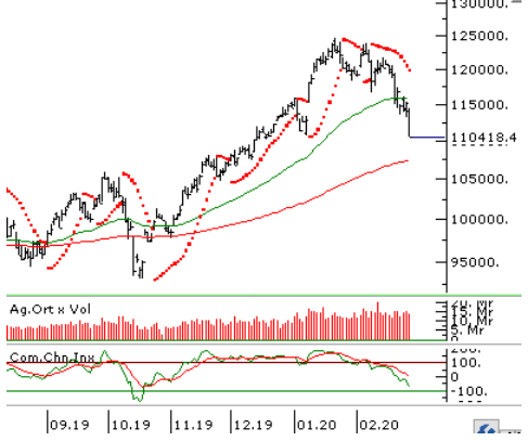 Endeks coronavirüs korkusu ve Türkiye – Rusya - İdlib karmaşasıyla günü % 4,13 azalışla 110.418 seviyesinden kapattı.