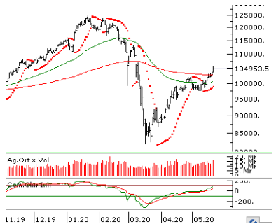 BİST100 endeksi tarafında ise dün endeks %2’nin üzerinde kalarak 105.495 puana çıkarak Mart sonrası en yüksek seviyeyi gördü. Bu hafta 103.000 seviyesi kuvvetli destek olmaya devam ederken 106.500 seviyesi kısa vadeli direnç olarak karşımıza çıkmaya devam edecek.